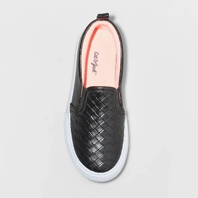 Upgrade your little one’s wardrobe with the Hailey Slip-On Apparel Sneakers from Cat & Jack™. These cool sneakers come in a classic white color that matches easily with a variety of items in their closet, so they can easily mix and match for an outfit as fun and unique as they are. Dress them up with a cute dress or skirt, or keep it casual with their favorite jeans, joggers, sweatpants or leggings. The woven-like pattern of the material adds an interesting textural element to the look too for an on-trend style.