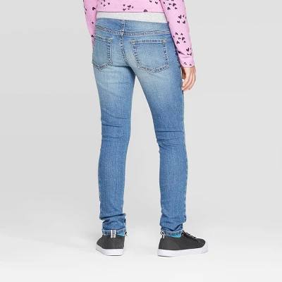 From school to weekends hanging out with friends, these Knit-Waist Jeans from Cat & Jack™ will keep her feeling great and looking cute. These mid-rise skinny jeans are crafted from a soft fabric with just the right amount of stretch to keep her comfy as she takes on her day. These knit-waist denim jeans feature a contrasting full-elastic waistband with a functional drawstring for a comfy fit while creating a stylish on-trend look she’ll love sporting. She can pair them with a graphic top and sneakers for a laid-back look, or with a blouse and flats when she wants to keep things more dressy.