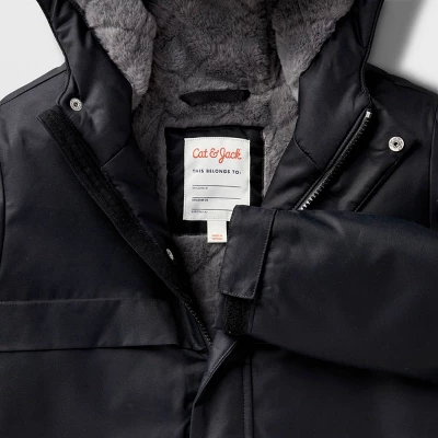 Keep them super warm this winter season with this Solid Playground Parka Jacket from Cat & Jack™. Made from lightweight water- and wind-resistant fabric with full lining and a ventilating design, this solid hooded parka jacket helps keep them dry, warm and comfy at all times. The front full-length zipper and snap closures allow for easy layering and help keep out the cold, while the two front pockets offer space for carrying small essentials. They can layer this long-sleeve jacket over tees, sweaters or sweatshirts with a range of bottoms for versatile wear.