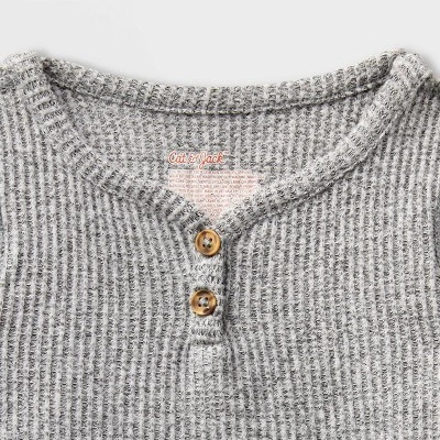 Your little one will look and feel their adorable best wearing this Adaptive Long-Sleeve Henley Peplum Shirt from Cat & Jack™. This garment is made with stretchy fabric that makes it easier to put on and more comfortable to wear. The long-sleeve peplum shirt is designed in a heathered gray hue with a round neckline and two front collar buttons. Perfect for everything from family gatherings to accompanying you on errands, the below-hip length makes it easy to pair with any of their bottoms.