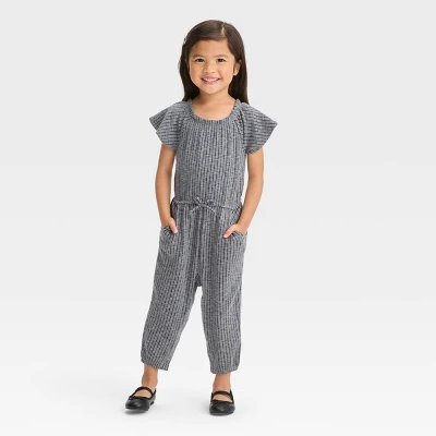 This Short-Sleeve Jumpsuit from Cat & Jack™ makes a comfy one-piece outfit in your little one’s wardrobe. Fashioned in an ankle length with loose fluttery short-sleeves it features a solid-colored pointelle finish and side pockets for functional style. The soft and stretchy jersey material offers comfy wear, while the pullover crewneck makes dressing them easy. Plus the elastic at waist and leg openings provides them a good fit.